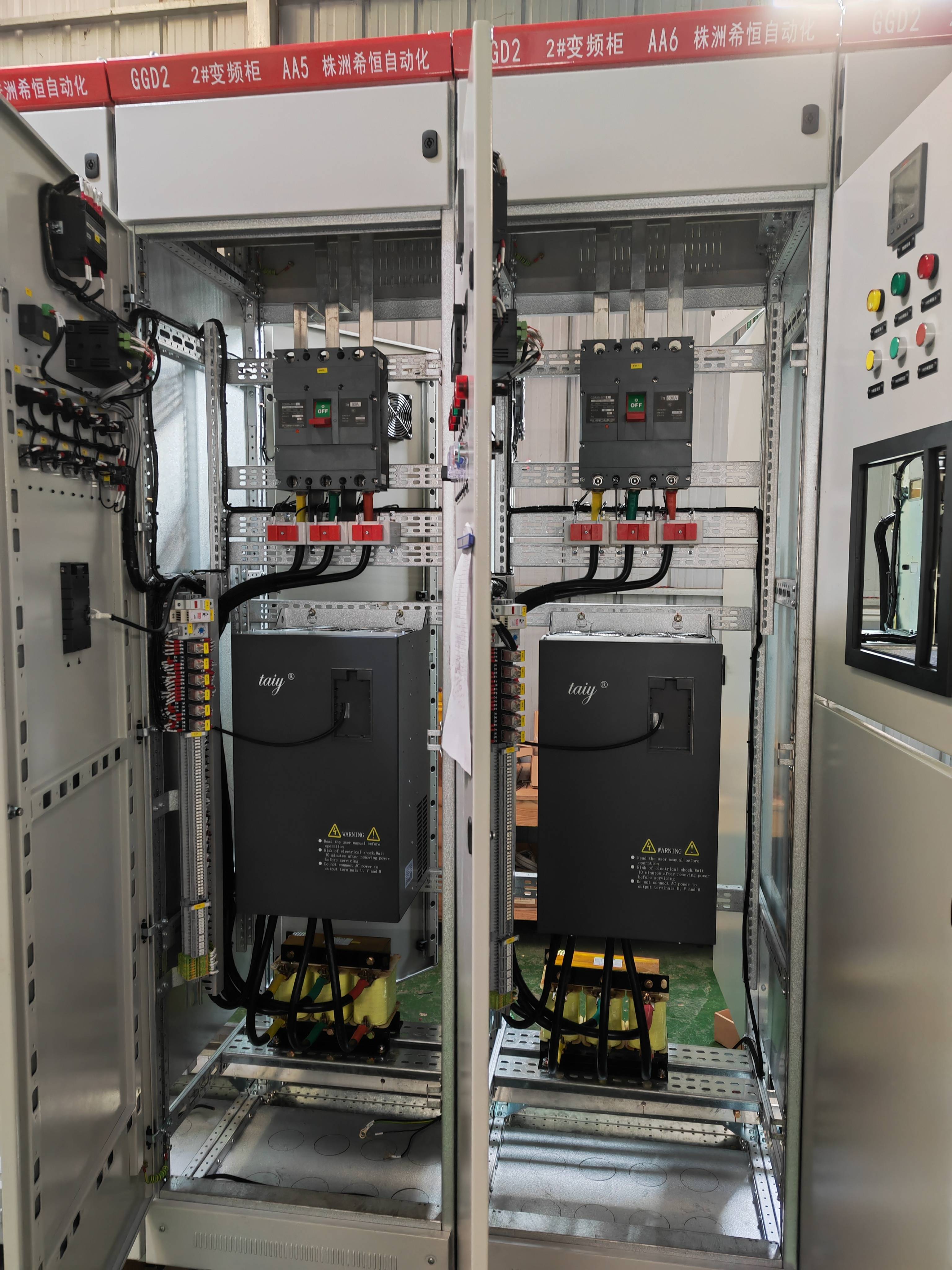 9、 整齊美觀將變頻器安裝在變頻柜中,并與其他低壓配電柜的尺寸相同,顏色一致,保持配電設(shè)施與控制裝置的協(xié)調(diào),整齊,美觀。