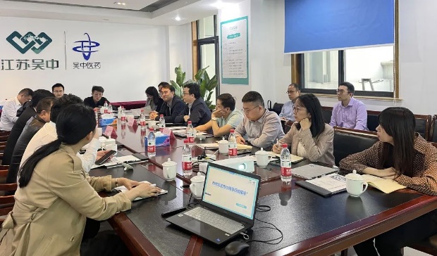 3月9日,調(diào)研組在江蘇省藥監(jiān)局及蘇州分局領(lǐng)導(dǎo)陪同下到江蘇吳中醫(yī)藥集團(tuán)有限公司蘇州制藥廠調(diào)研,股份公司董事長(zhǎng)、首席執(zhí)行官錢群山及經(jīng)營(yíng)管理委員會(huì)委員等參加了座談。