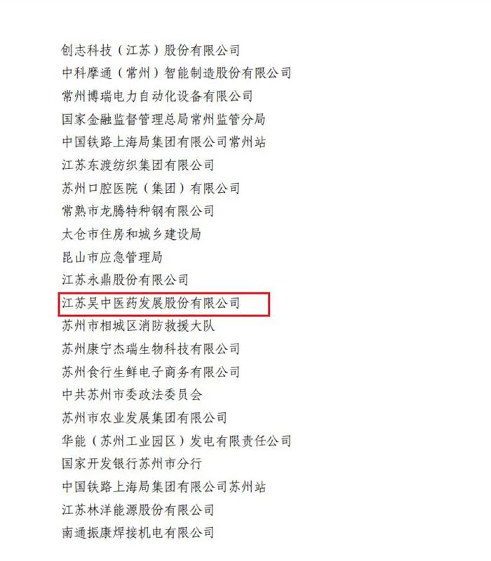 4月23日,根據《江蘇省總工會關于表彰 2024年省五一勞動獎和省工人先鋒號的決定》(蘇工發〔2024〕3號),江蘇吳中醫藥發展股份有限公司獲評江蘇省五一勞動獎狀。